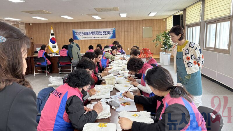 과제교육은 제27회 함평나비대축제를 앞두고 지역 관광 캐릭터인 ‘황박이’를 활용한 ‘나만의 이불 꾸미기’ 수업으로 진행됐으며, 자수와 섬유 페인팅 체험을 통해 회원들의 창의성을 키우고 감수성을 자극하는 시간이 마련됐다.