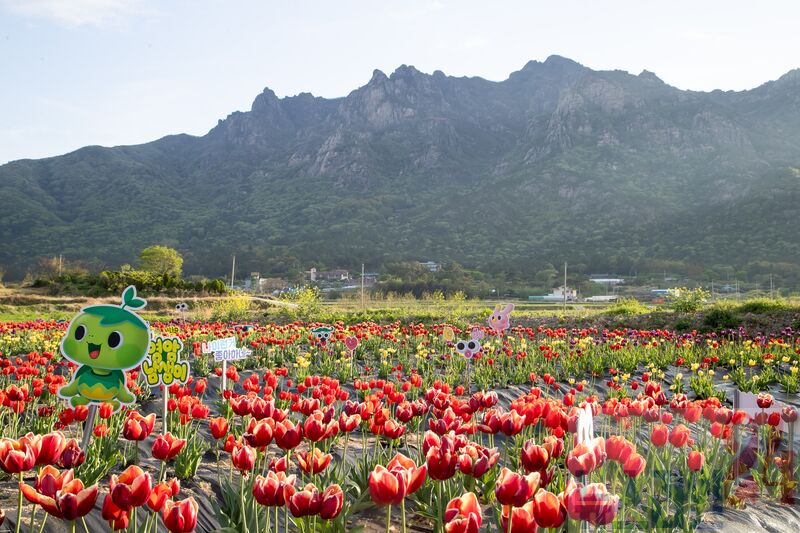 지난해 축구장 1/3 크기의 이 자리에 가을 댑싸리 단지를 가꿔 영암의 새 풍경을 선사한 영암군이, 올봄 상춘객을 위해 지난해 12월 린반덴마크 등 6종의 튤립, 8,000본을 심었고, 현재 그 꽃이 절정을 이루고 있다.