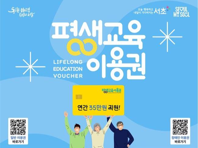 그중 이번에 1차로 접수하는 `일반 평생교육이용권` 대상자는 주민등록상 서초구에 주소를 둔 19세 이상 성인 중 기초생활수급자 및 차상위계층(장애수당·장애인연금 수급자, 한부모가족지원법에 따른 지원대상자 포함)으로, 서울시 평생교육이용권 누리집에서 신청하면 된다.