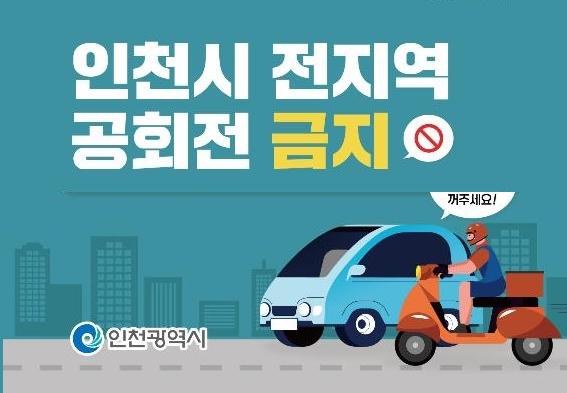 2025년 1월 1일부터 인천시 전 지역(옹진군은 영흥면만 포함)에서 이륜자동차 및 자동차의 공회전이 전면 금지되며, 위반 시 5만 원의 과태료가 부과된다.