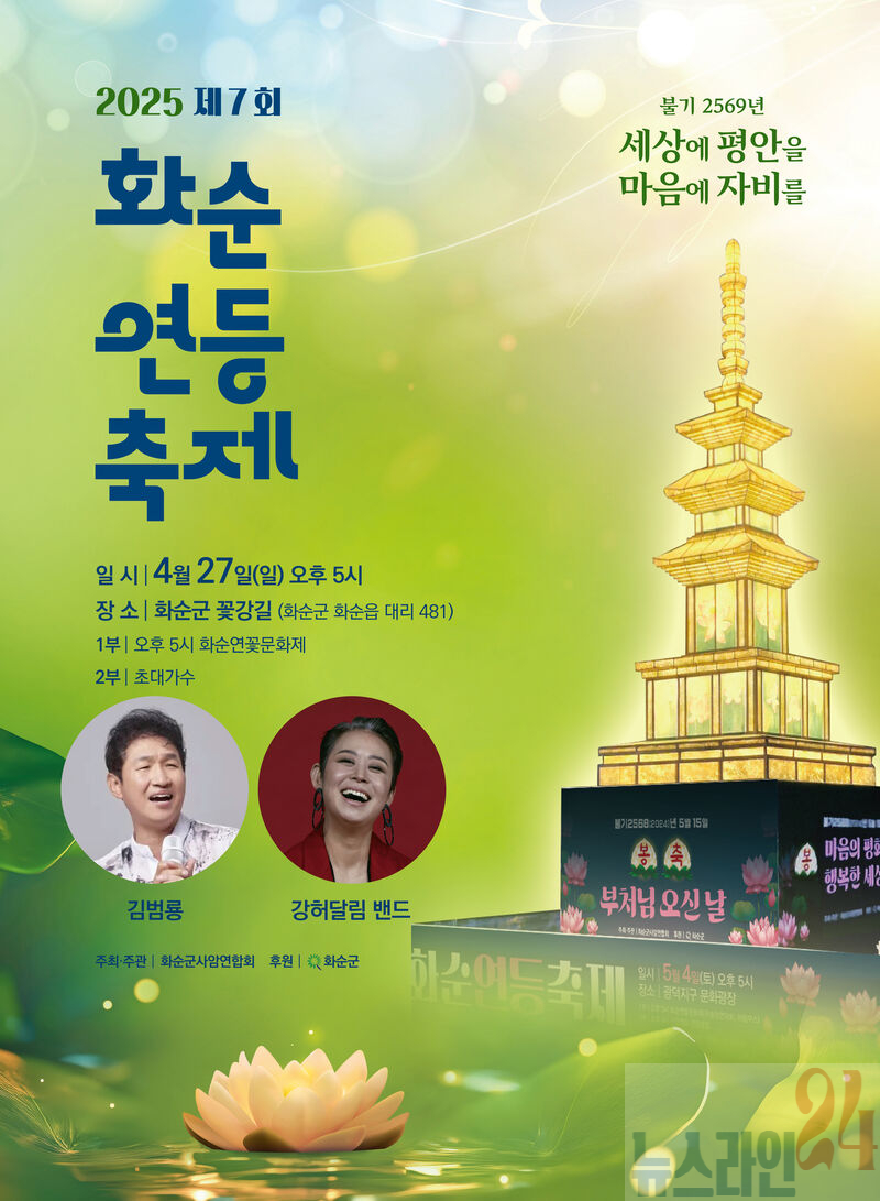 화순군(군수 구복규)은 오는 27일(일) '2025년 화순연등축제가 꽃강길 특설무대에서 개최된다고 밝혔다.
