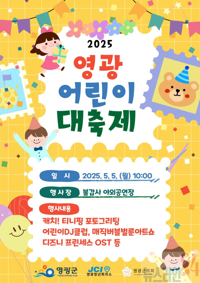영광군(군수 장세일)은 오는 5월 5일(월), 어린이날을 맞아 잔디밭이 넓게 펼쳐진 불갑사 야외공연장에서 “2025년 영광 어린이 대축제”를 개최한다고 밝혔다.
