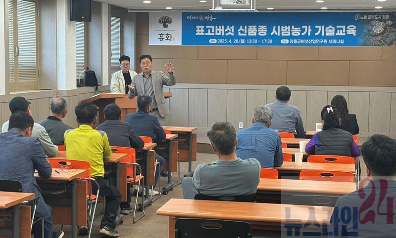 장흥군버섯산업연구원(원장 문정걸)은 지난 28일 연구원 세미나실에서 표고버섯 ‘흥화’ 신품종에 대한 기술교육을 개최했다.