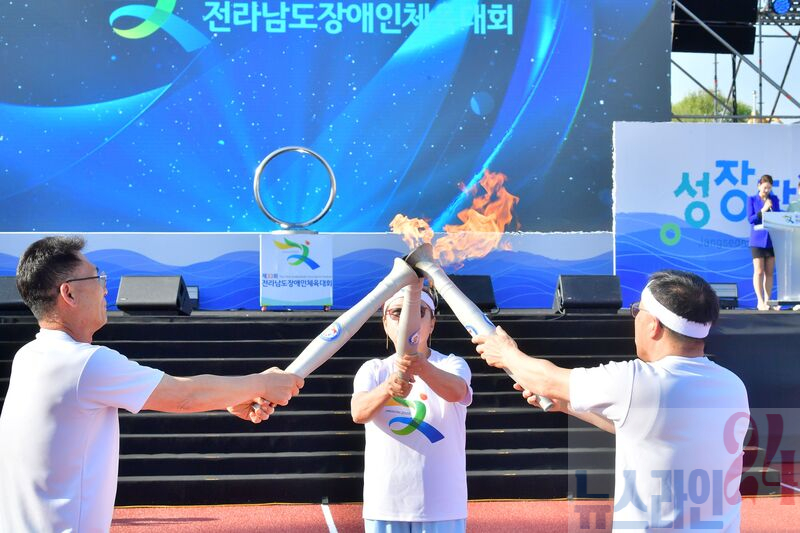 성화는 정태이 장성군 장애인체육회 이사, 김양중 탁구선수에 이어 지난해 전남장애인체전 시각탁구 금메달을 수상한 박영자 선수가 최종 점화를 맡았다.