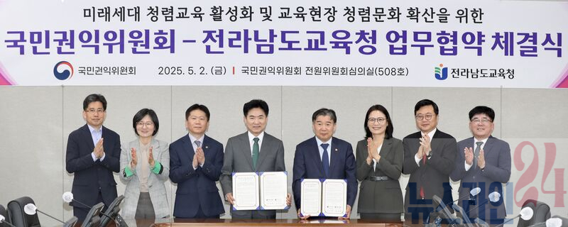 전라남도교육청(교육감 김대중)이 미래세대의 청렴 의식을 높이고, 교육현장에서 청렴 문화를 확산하기 위해 국민권익위원회와 손을 맞잡았다.
