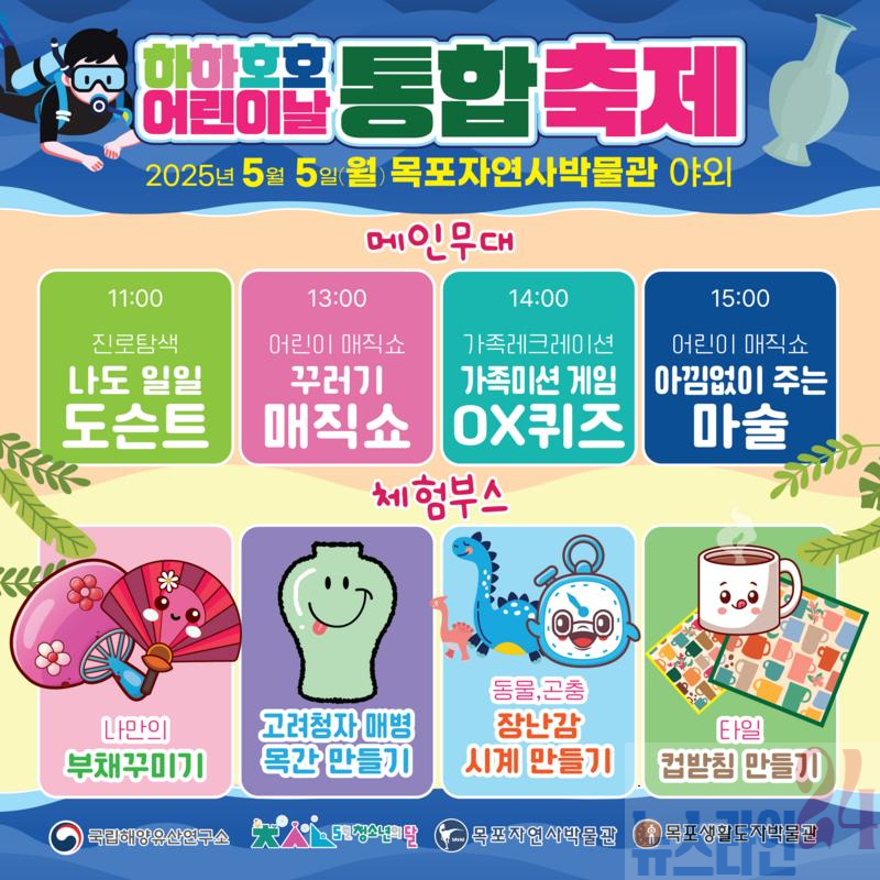 목포자연사박물관은 어린이날을 맞아 오는 5월 5일 박물관 야외 일원에서 국립해양유산연구소와 함께 ‘하하호호 어린이날 통합축제’를 개최한다.