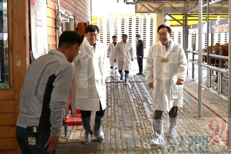 윤병태 나주시장은 이날 재개장한 나주축협 가축시장 현장을 방문해 한우 농가주들을 격려했다.