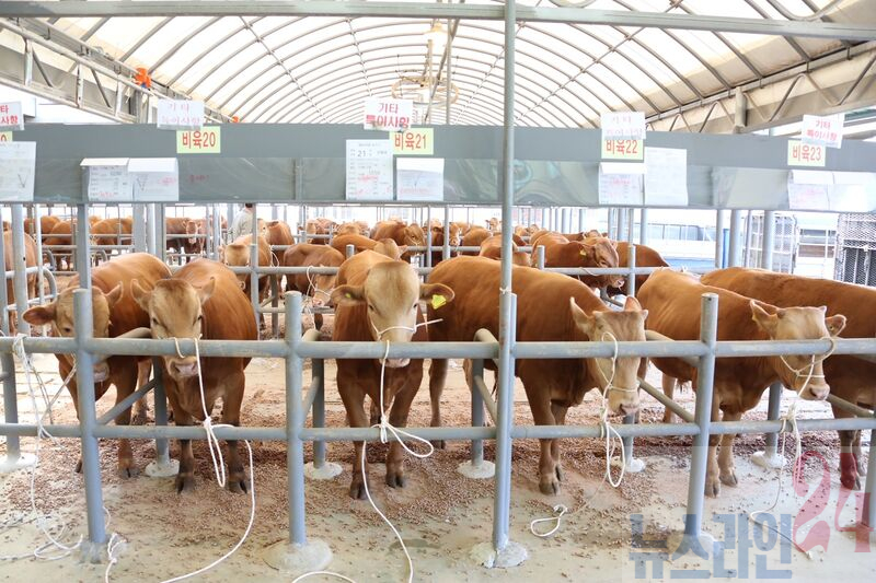 본래 가축시장은 매주 금요일에 열리지만 지난 두 달여 간 한우 거래 중단으로 경영상 어려움이 가중되고 있는 한우 농가 여건을 감안해 이날 재개장에 맞춰 송아지 특별 경매를 진행했다.