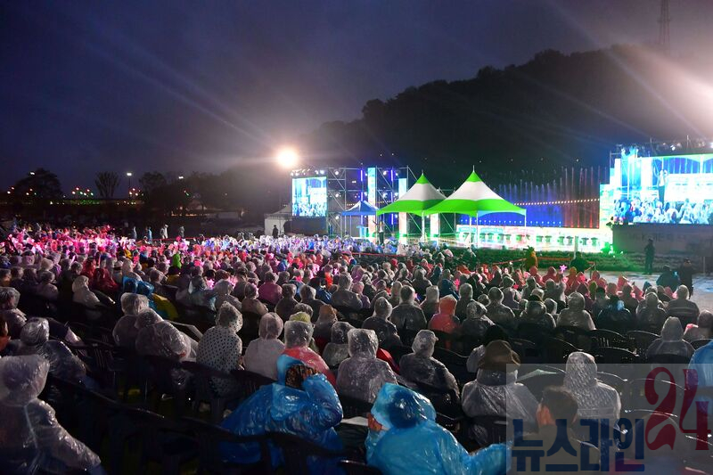장성군이 9일 ‘제24회 장성 황룡강 길동무 꽃길축제’ 전야제를 갖고 축제의 개막을 알렸다. 비바람이 부는 악천후에도 5000여 명의 발길이 축제장으로 모였다.