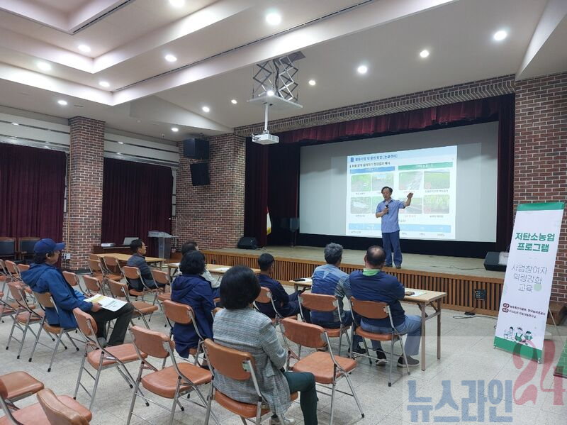 이번 교육에는 저탄소 농업 프로그램 시범사업에 참여한 80여 명의 농가가 참석했으며, 논에서의 메탄가스 감축 실천 방안을 중심으로 진행됐다.
