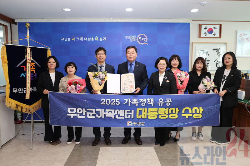 전남 무안군(군수 김산)은 무안군가족센터(센터장 정준수)가 지난 8일 여성가족부 주관 2025년 가정의 달 기념행사에서 가족정책분야 대통령상을 수상했다고 밝혔다.
