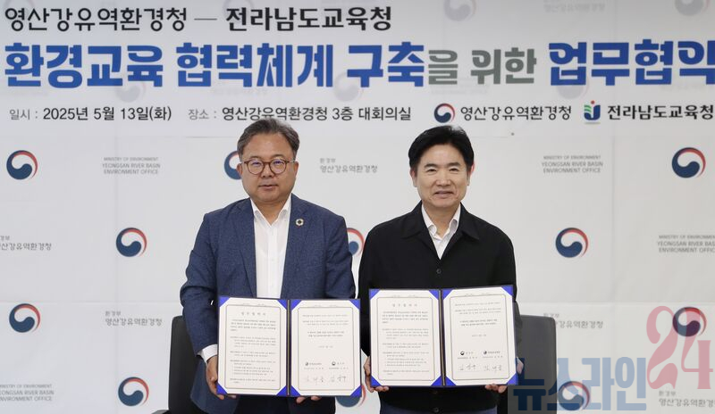 전라남도교육청(교육감 김대중)과 영산강유역환경청(청장 김영우)은 13일 영산강유역환경청 대회의실에서 ‘환경교육 협력체계 구축’을 위한 업무협약을 맺고, 학생과 전문가가 함께하는 실천 중심 활동에 협력하기로 했다.