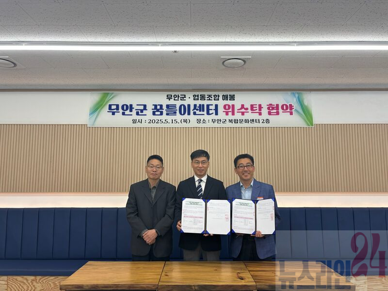 전남 무안군(군수 김산)은 15일 협동조합 해봄(대표 어성준)과 무안군 복합문화센터 2층에 위치한 ‘꿈틀이센터’ 운영 위수탁 협약을 체결했다.