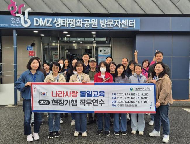 대구시교육청(교육감 강은희)은 5월 16일(금)부터 31일(토)까지 3기에 걸쳐 강원도 철원군 일원에서 교원 대상 `나라사랑 통일교육 현장기행 직무연수`를 진행한다고 밝혔다.