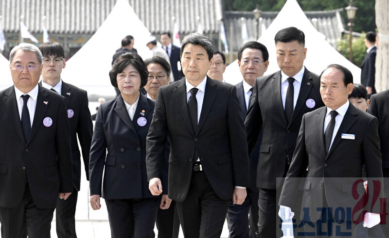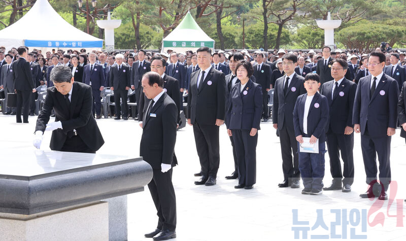 이주호 대통령 권한대행 부총리 겸 교육부 장관이 18일 광주광역시 북구 국립 5·18민주묘지에서 열린 5·18민주화운동 45주년 기념식에서 김영록 전라남도지사, 강기정 광주광역시장 등과 분향을 하고 있다.