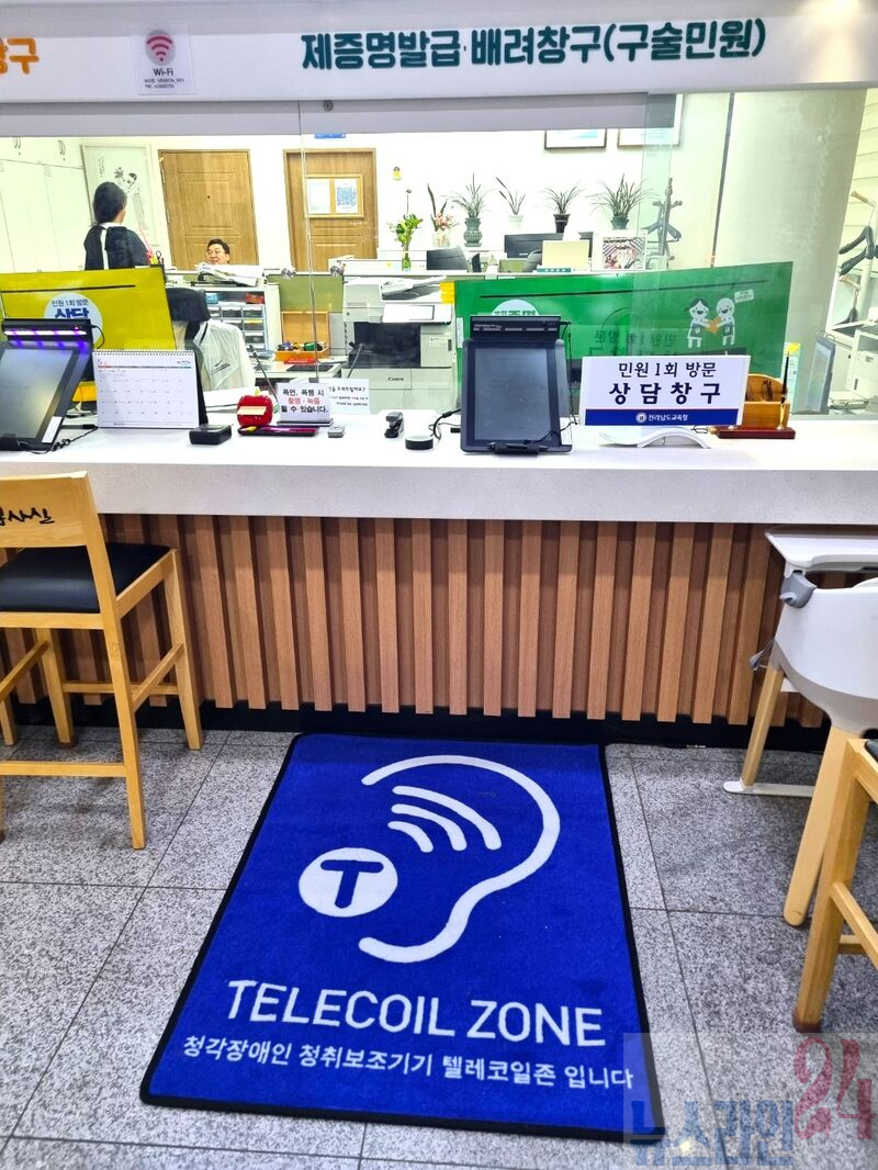 ‘텔레코일존’은 인공와우나 보청기에 탑재된 텔레코일(Telecoil) 기능을 활용해, 소음을 최소화하고 담당자의 음성을 명확하게 전달하는 보조 청취 시스템이다. 민원인이 텔레코일존에 들어서면 해당 보조장치를 통해 교신 음성을 선명하게 들을 수 있어, 정확한 민원 안내가 가능해진다.