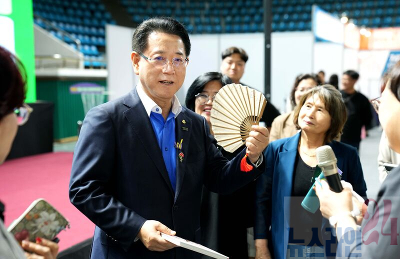 김영록 전라남도지사가 21일 순천 팔마실내체육관에서 열린 ‘2025년 전남 여성 일자리 박람회’에서 부스를 둘러보고 있다.