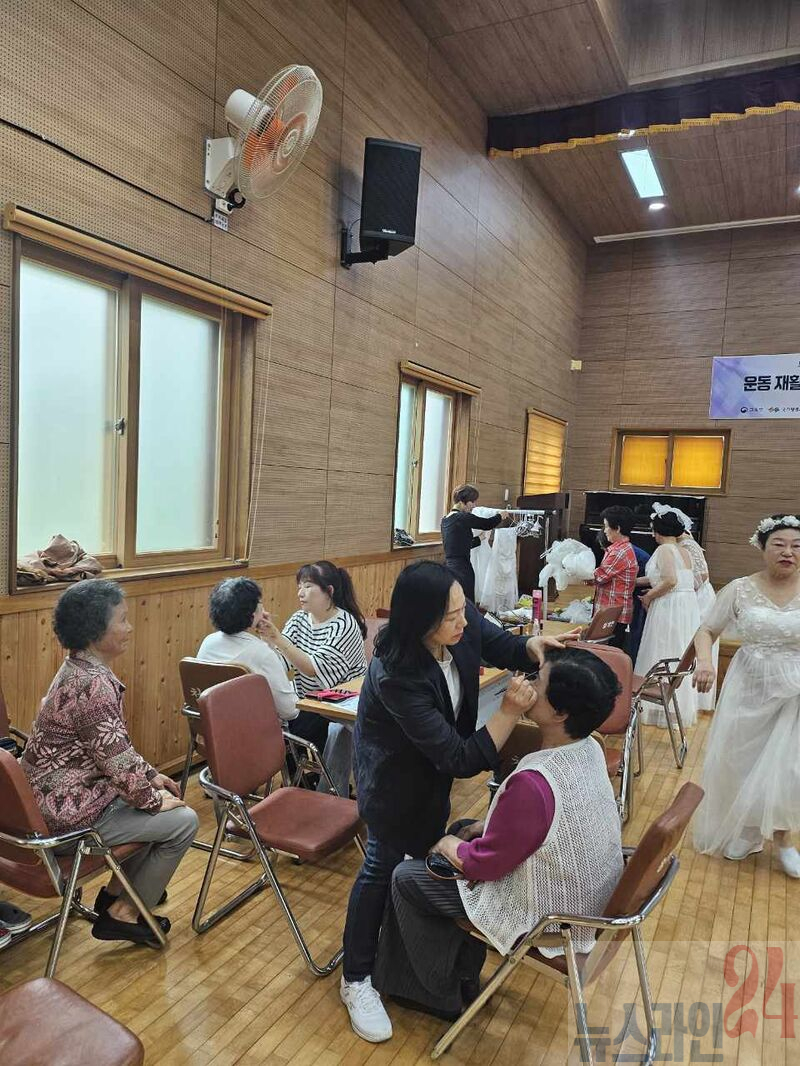 이날 여성 어르신들은 여성분과 위원들의 도움으로 화장을 받고, 웨딩드레스와 화관으로 곱게 단장한 뒤 기념사진을 촬영하며 환한 미소 가득한 특별한 추억을 남겼다.