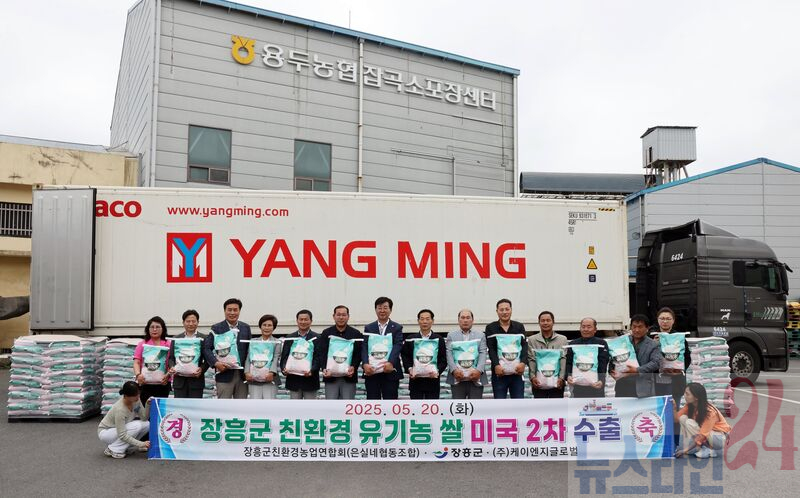 장흥군은 20일 용두농협 미곡종합처리장에서 미국 수출을 위한 친환경 유기농쌀 수출 상차식을 가졌다.