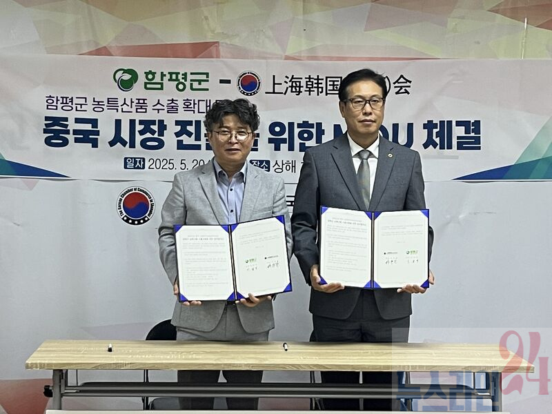 전남 함평군이 상해한국상회와 농특산물 수출 촉진 업무협약(MOU)를 체결하며 해외시장 진출의 청신호를 밝혔다.