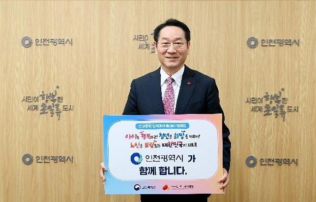 유정복 인천광역시장은 저출생과 고령화 등 인구구조 변화로 인한 문제를 알리고 사회적 인식을 개선하기 위해 `인구문제 인식개선 릴레이 캠페인`에 동참했다고 6일 밝혔다.