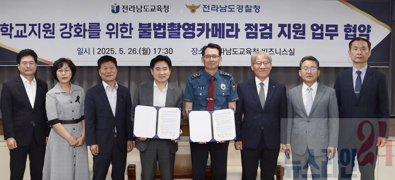 전라남도교육청(교육감 김대중)과 전라남도경찰청(청장 모상묘)은 26일 전라남도교육청에서 ‘불법 촬영 카메라 점검 및 학교 지원 체계 구축’을 위한 업무협약을 체결했다.