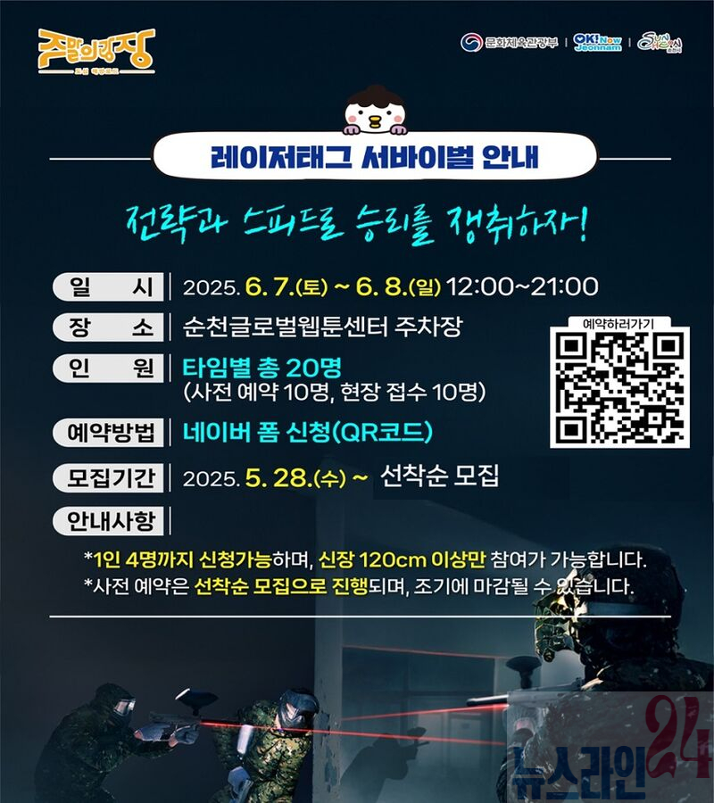 순천시(시장 노관규)는 오는 7일부터 8일까지 원도심 시민로에서 개최되는 ‘주말의 광장’행사의 주요 체험프로그램으로 ‘레이저 태그’를 선보인다.