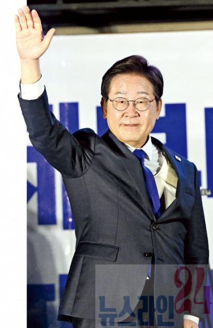 인천 계양구 자택에서 개표 상황을 지켜보던 이 대통령은 김혜경 여사와 함께 3일 오후 11시48분 집에서 나왔다. 이 대통령이 기다리던 지지자들에게 손을 흔들자 이재명을 연호하는 환호성이 나왔다. 이 대통령은 운집한 군중을 향해 “국민의 위대한 결정에 경의를 표한다”며 “제게 주어진 큰 책임과 사명을 기대에 어긋나지 않게 최선을 다하겠다”고 말했다. 짙은 청색 넥타이를 맨 이 대통령의 표정은 담담했다.