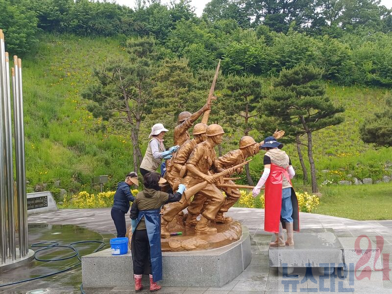 프로그램의 첫 활동으로 10여 명의 자원봉사자들이 참여해 현충공원 내 동상을 청소하고, 대리석 바닥에 쌓인 먼지를 고압세척기로 제거하며 방문객들에게 더욱 쾌적한 환경을 제공했다.