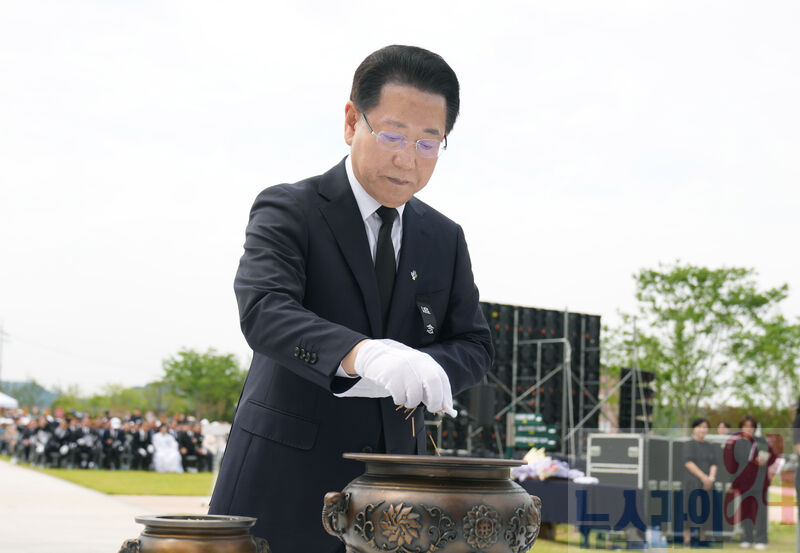 김영록 전라남도지사가 6일 담양군 평화예술광장에서 열린 ‘제70회 현충일 추념식’에 참석, 분향을 하고 있다.