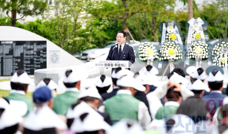 김영록 전라남도지사가 6일 담양군 평화예술광장에서 열린 ‘제70회 현충일 추념식’에 참석, 추념사를 하고 있다.