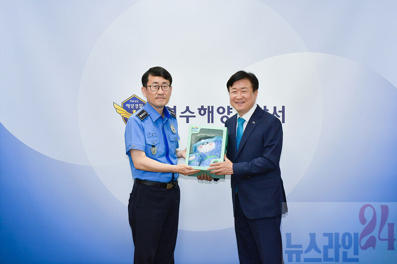 정기명 여수시장이 지난 4일 2026여수세계섬박람회 홍보와 박람회장 운영 협조를 위해 여수해양경찰서를 방문, 김기용 서장과 면담했다.