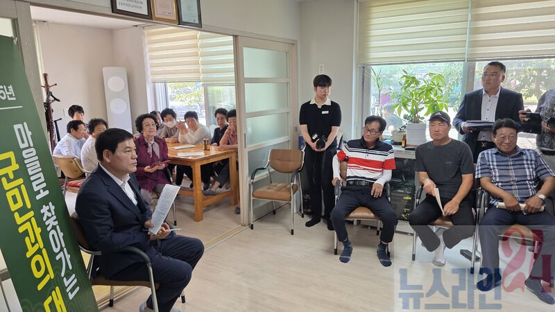 첫날(9일)에는 객사리, 담주리, 천변리 경로당을 차례로 방문해 군정 방향을 설명하고, 참석 공무원들과 함께 건의 사항 청취와 질의응답을 진행했다.