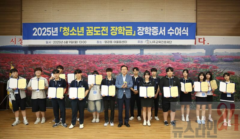 나주교육진흥재단(이사장 윤병태)은 지난 9일 ‘2025년 청소년 꿈도전 장학금’에 선발된 나주시 중·고등학생 81명(중학생 41, 고등학생 40)에게 1인당 최대 100만 원씩 장학금 총7천 973만4천원을 지급했다고 10일 밝혔다.