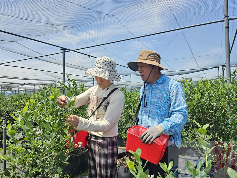 실습에 참여한 교육생들의 반응도 긍정적으로, 2024년도 체류형 귀농사관학교를 수료한 김경섭 씨는 올해 블루베리를 심고 선도농가에서 기술 전수를 받고 있다.