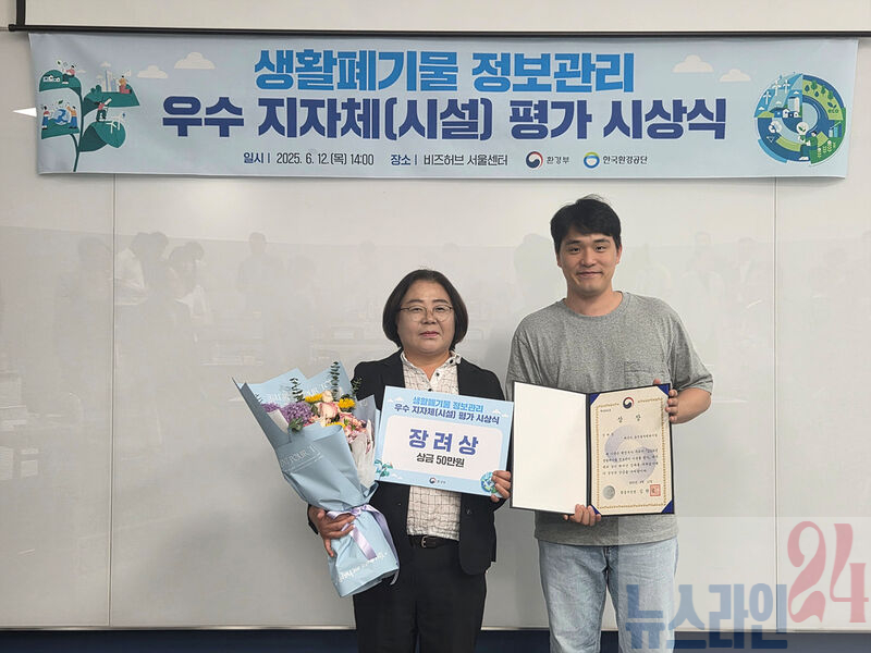 여수시가 최근 환경부에서 실시한 2024년 생활폐기물 정보관리시스템 이용률 평가에서 공공처리시설 분야 우수기관(장려상)으로 선정돼 기관표창과 포상금50만원을 지급받게 됐다.