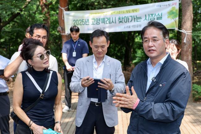 이동환 고양시장, 도래울석탄공원 맨발길 조성 현장 방문...시민 곁에서 듣고 답하다