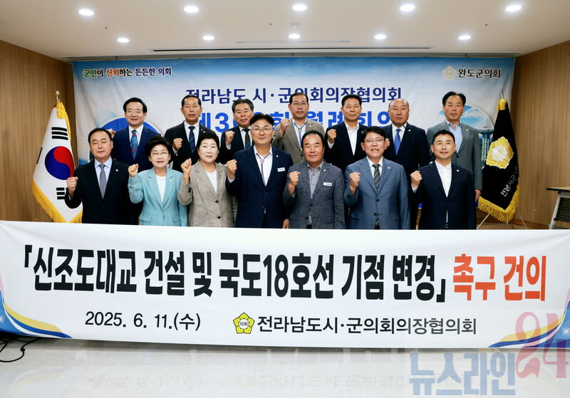 진도군의회(의장 박금례)는 6월 11일 개최된 전남시군의회의장협의회 정례회의에서 「신조도대교 건설 및 국도18호선 기점 변경 촉구 건의안」이 채택됐다고 전했다.