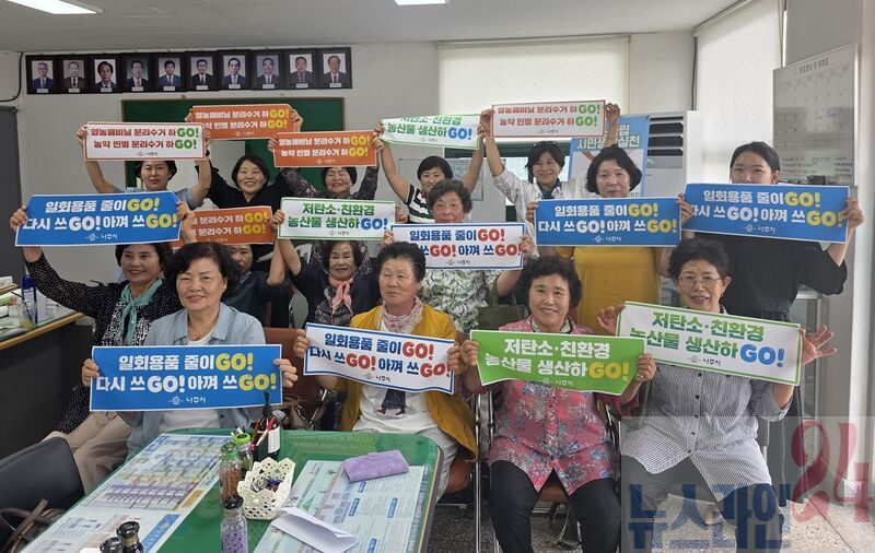 교육을 마친 생활개선회 회원들은 “저탄소 ․ 친환경 농산물 생산하GO!” “일회용품 줄이GO!, 다시 쓰GO!, 아껴 쓰GO!” “영농폐비닐 분리수거 하GO!, 농약 빈병 분리수거 하GO!” 등의 피켓을 들고 슬로건을 외치며 탄소중립 실천 의지를 다졌다.