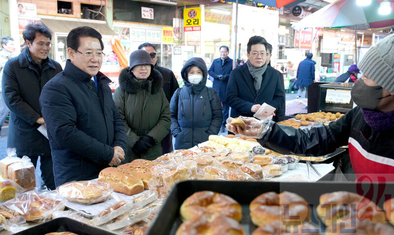 김영록 전라남도지사가 10일 순천시 중앙동 상가를 방문, 내수경기 침체로 인한 소비 부진으로 어려움을 겪는 소상공인들을 격려하고 있다.