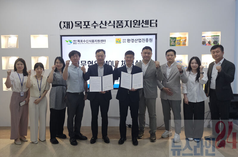 (재)목포수산식품지원센터는 (재)전남환경산업진흥원와 지난 25일, 수산식품산업과 환경산업 분야의 연구개발(R&D) 역량 강화를 위한 공동 연구사업 발굴을 목적으로 업무협약을 체결했다고 밝혔다.