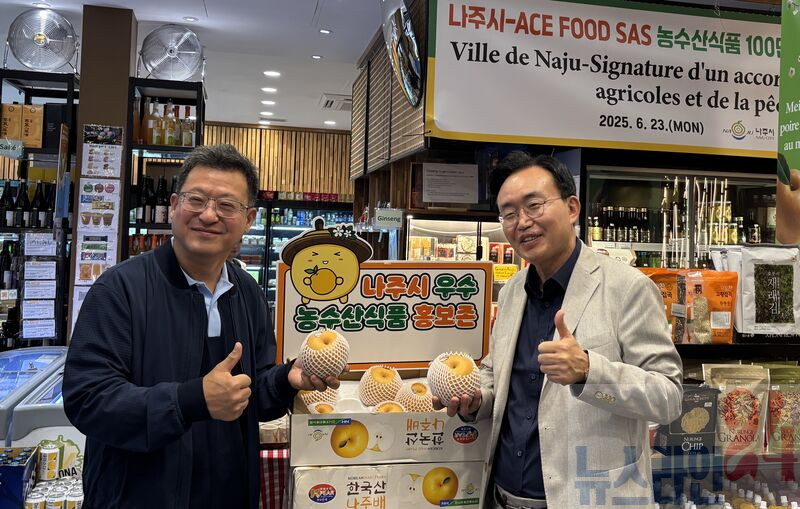 윤병태 나주시장은 지난 23일 프랑스 파리의 에이스마트 루브르점에서 현지 유통업체인 에이스푸드와 농수산식품 수출 업무협약을 체결하고 나주산 농수산식품 홍보 행사를 가졌다. 2026년 한불수교 140주년을 앞두고 프랑스를 방문한 ‘나주시 국제교류 협력단’이 파리의 유수 유통업체와 100만 달러 규모의 나주 농수산식품 수출 협약을 맺고 프랑스의 대표 교육 문화도시인 클레르몽페랑시와 우호교류 협약을 체결하는 등 경제 외교 분야 국제교류에 큰 성과를 거두고 귀국했다.