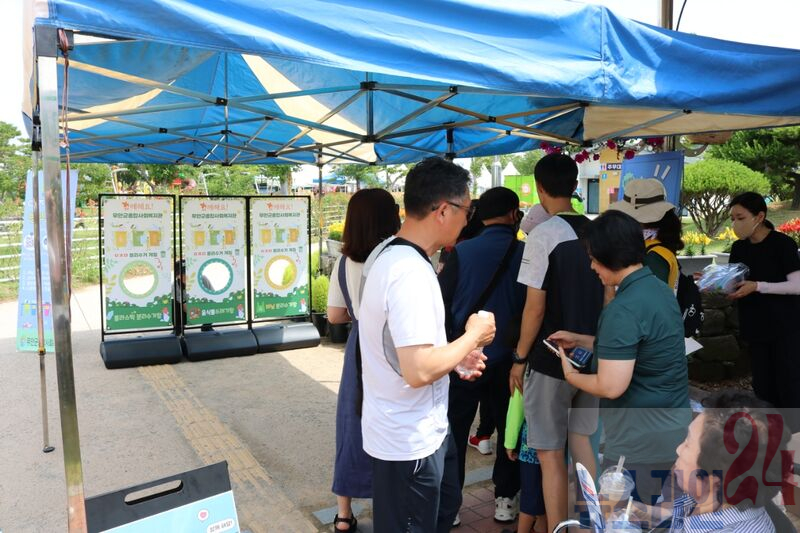 특히, 아이와 함께 축제장을 찾은 가족 단위 방문객에게 큰 호응을 얻으며 ‘푸른동행 클린무안’의 의미도 되새기고, 참여자 전원에게 일회용품 사용 절감에 도움을 주는 친환경 수세미 및 부채와 토시 등의 무더위 활동 예방 홍보 키트를 제공하며 건강한 여름나기 활동도 알렸다.