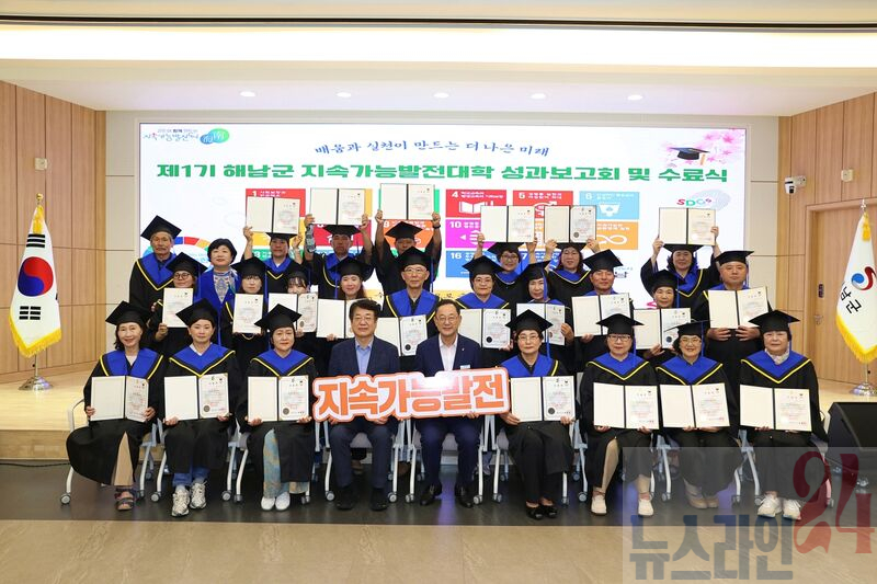 해남군이 올해 처음으로 운영한 지속가능발전대학이 성공리에 첫발을 내딛었다. 군은 지난 26일 군 대회의실에서 제1기 해남군 지속가능발전대학 성과보고회 및 수료식을 개최했다.
