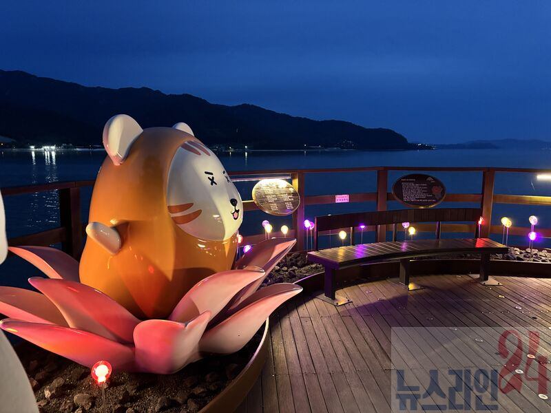‘십이몬 레이스’는 스퀘어에만 머물지 않는다. 가우도 전체가 무대가 된다. 해안 산책로를 따라 이어지는 ‘별빛 로드’에는 감성적인 야간 조명이 더해져 낮과는 또 다른 분위기를 연출한다. 김영랑 시인의 시어와 호랑이띠 캐릭터가 함께하는 ‘호랑 영랑시’ 구간은 문학과 캐릭터가 만나는 감성적인 공간이다. 그리고 하이라이트는 청자타워 앞 해상데크 공간에서 만날 수 있는 ‘달의 바다’구간이다.