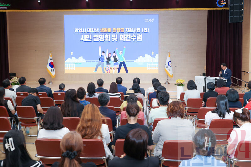 광양시는 지난 6월 30일 시청 시민홀에서 학부모, 교육 및 사회단체 관계자, 이통장, 주민자치위원 등을 대상으로 ‘대학생 생활비 장학금 지원사업(안)’ 시민 설명회를 열고 시민 의견을 수렴했다고 밝혔다.
