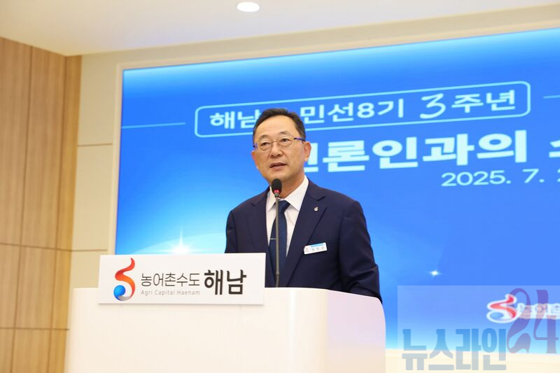 해남군은 2일 군청 대회의실에서 민선8기 3주년 언론인 간담회를 갖고, 지난 민선7~8기 7년의 성과를 돌아보고, 앞으로 군정발전 방향과 비전을 설명하는 대화의 시간을 가졌다.