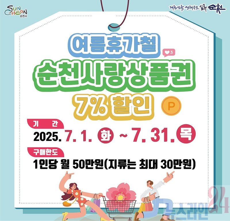 시 관계자는 “이번 특별할인이 여름휴가철 순천을 찾는 관광객과 시민들의 알뜰한 소비생활에 도움이 되고, 지역경제 활성화에도 기여하길 기대한다”고 전했다.