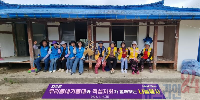 신안군 자은면 복지기동대(대장 박낭근)와 대한적십자봉사회 자은면협의회(회장 이순금)는 지난 7월 4일(금), 구영마을 독거어르신 가구에 대한 주거 환경 개선 봉사를 진행했다.