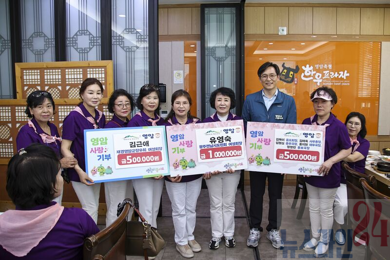 영암읍 축협한우플라자에서 열린 고향사랑기부금 전달식에서 유영숙 회장, 김근애 영암군여성회장을 포함한 여성회 임원들은 십시일반한 성금을 영암군에 전했다.